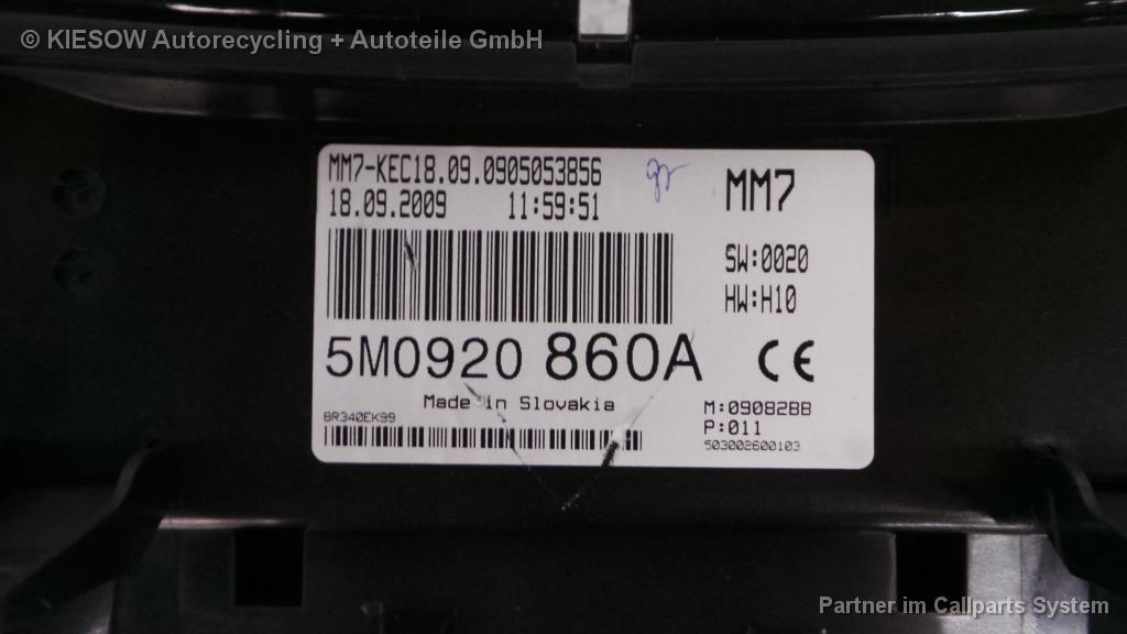 VW Golf Plus; Tacho; Kombiinstrument; ab 01/09-; 5M0920860A